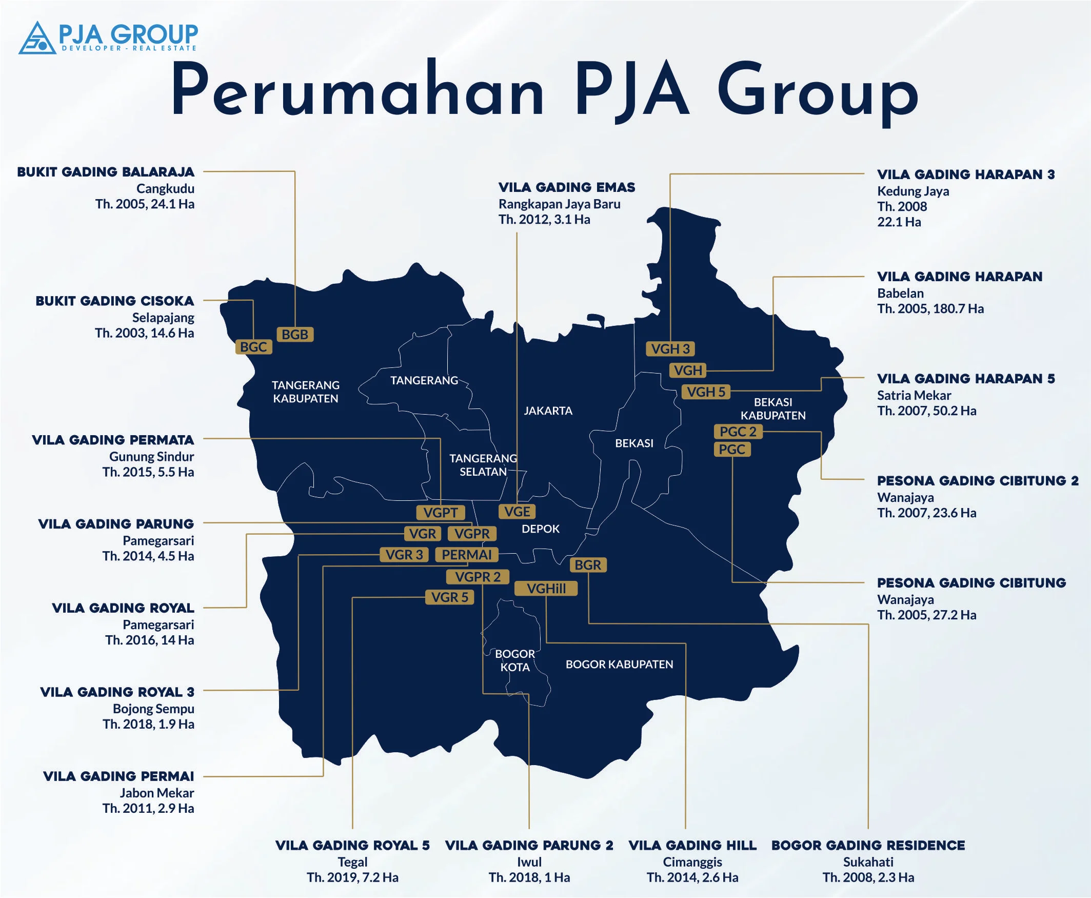 Persada Jaya Artha (PJA Group) melalui PT. Persada Jaya Artha dan PT. Pundi Graha Kencana telah terbukti sebagai pengembang perumahan subsidi dan komersial terpercaya dengan proyek perumahan yang tersebar di wilayah Bogor, Tangerang, Depok dan Bekasi. Sejak tahun 2003 PJA Group telah mewujudkan rumah subsidi dan komersial bagi lebih dari 30.000 keluarga.