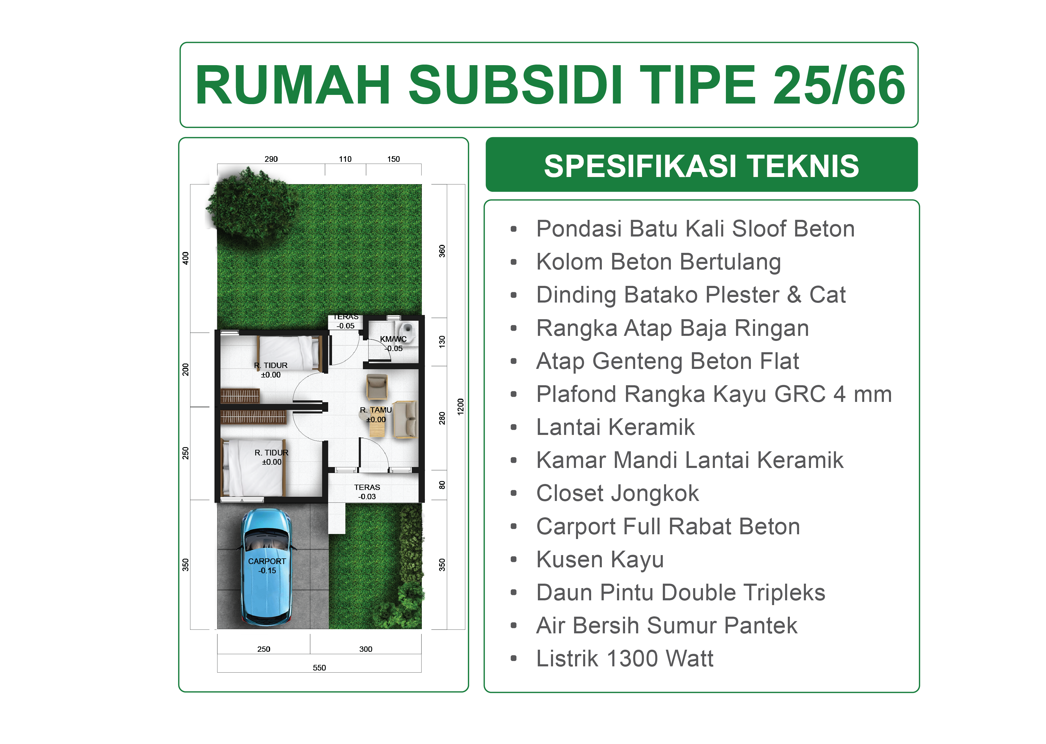 Spesifikasi dan desain dapat berubah sewaktu-waktu tanpa pemberitahuan terlebih dahulu dan merupakan hak penuh pengembang. Foto/gambar/ilustrasi yang ditampilkan merupakan contoh dan bukan merupakan bagian dari perjanjian jual beli.